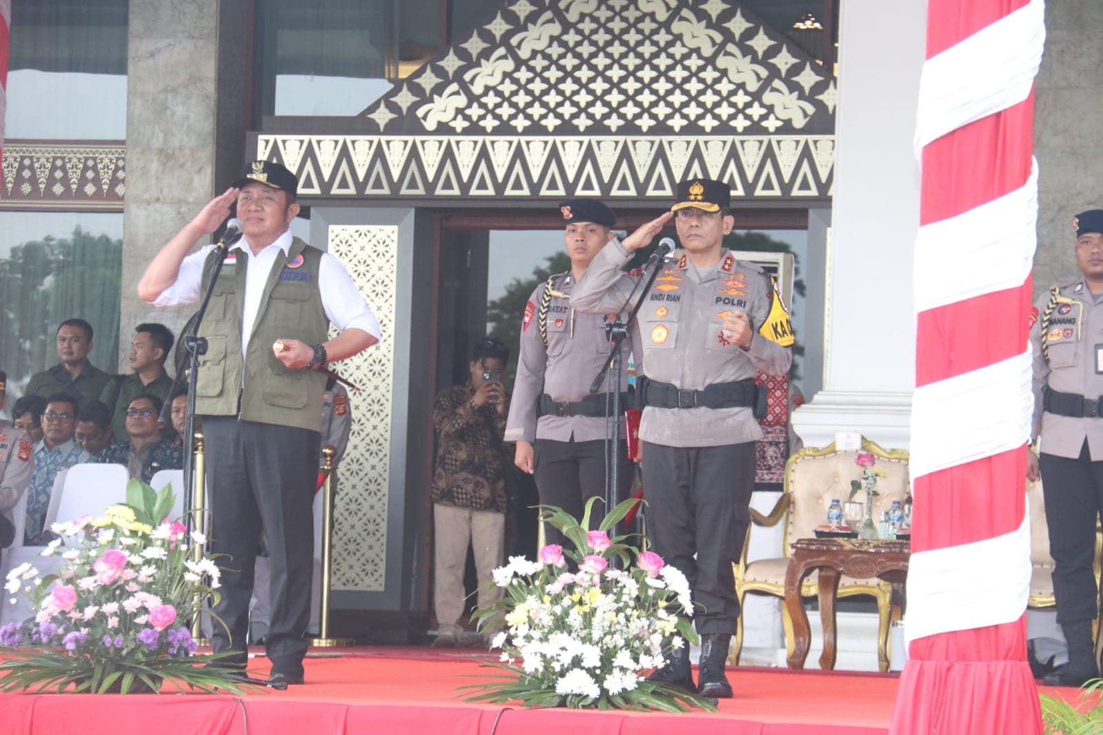Apel gelar pasukan tersebut dipimpin langsung oleh Kapolda Sumsel Irjen Pol Andi Rian R. Djajadi, S.I.K., M.H., bersama Gubernur Sumatera Selatan Dr. H. Herman Deru. Seluruh peserta apel dari unsur TNI, Polri, serta instansi terkait tetap berdiri di lapangan mengikuti rangkaian kegiatan tanpa meninggalkan barisan, mencerminkan semangat pengabdian dan komitmen dalam menjalankan tugas negara.