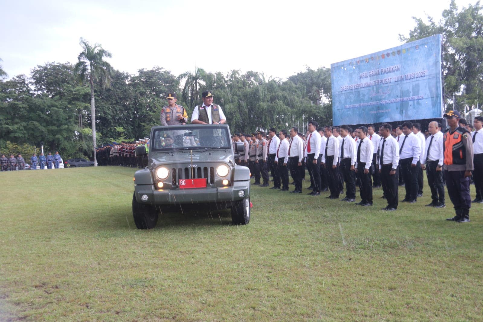 Apel gelar pasukan tersebut dipimpin langsung oleh Kapolda Sumsel Irjen Pol Andi Rian R. Djajadi, S.I.K., M.H., bersama Gubernur Sumatera Selatan Dr. H. Herman Deru. Seluruh peserta apel dari unsur TNI, Polri, serta instansi terkait tetap berdiri di lapangan mengikuti rangkaian kegiatan tanpa meninggalkan barisan, mencerminkan semangat pengabdian dan komitmen dalam menjalankan tugas negara.