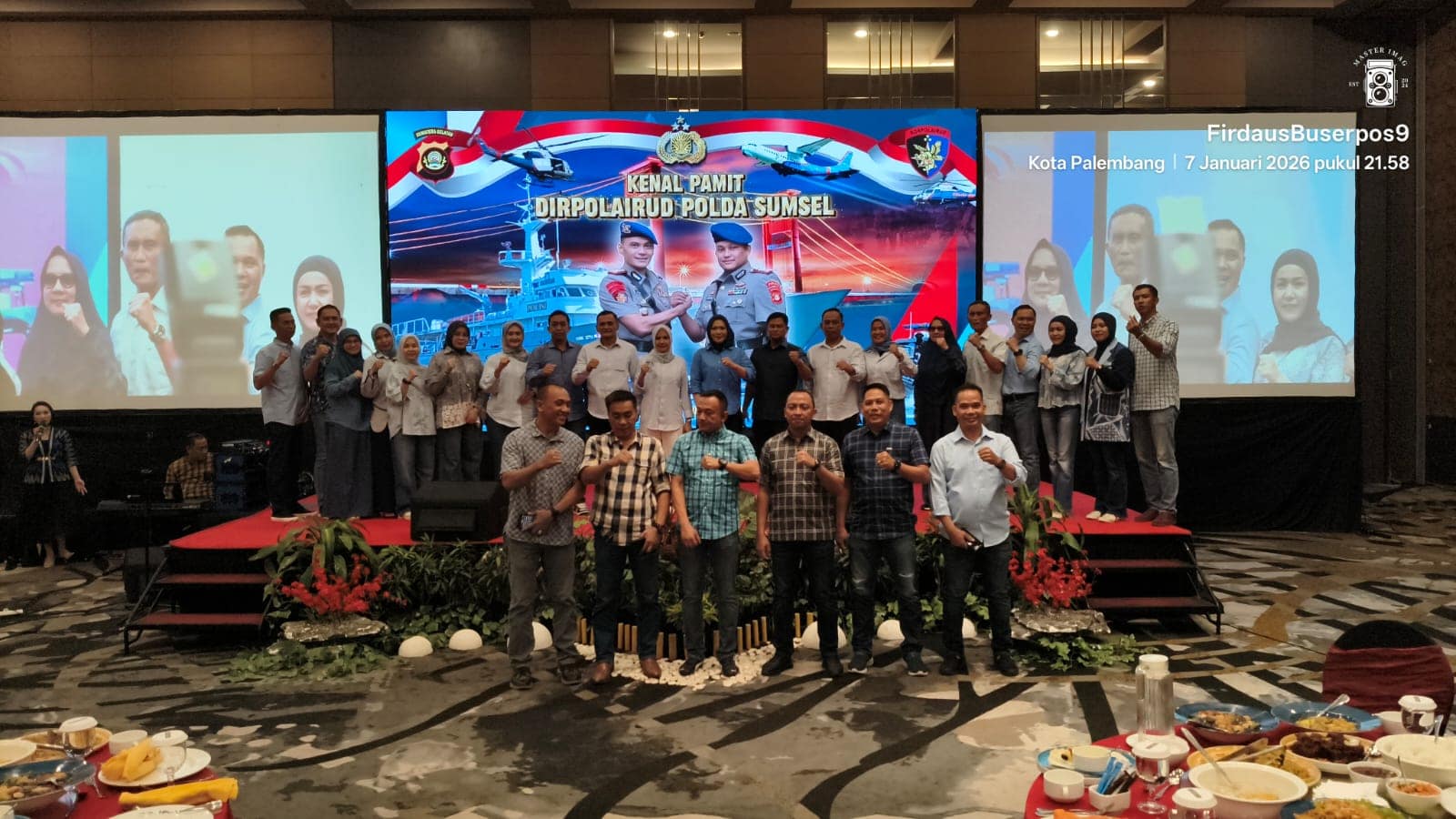 Palembang – Direktorat Polisi Perairan dan Udara (Ditpolairud) Polda Sumatera Selatan menggelar acara kenal pamit Direktur Polairud Polda Sumsel dari pejabat lama Kombes Pol. Sonny Mahar Budi Adityawan, S.I.K., M.H. kepada pejabat baru Kombespol Heru Agung Nugroho, S.I.K., yang berlangsung di Hotel Harper Palembang, Rabu (7/1/2026) malam.