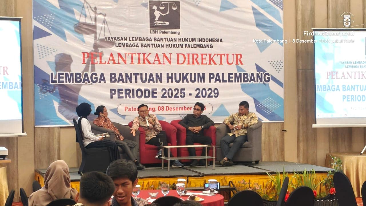 PALEMBANG – Ivan Widodo, S.H. resmi dilantik sebagai Direktur Lembaga Bantuan Hukum (LBH) Palembang untuk periode 2025–2029. Ia menggantikan Direktur sebelumnya, Jourdan Gultom, S.H., M.H. Prosesi pelantikan dipimpin langsung oleh Ketua Umum Yayasan Lembaga Bantuan Hukum Indonesia (YLBHI), Muhamad Isnur, S.H.I., M.H., di Ballroom Hotel Fave Palembang, Senin (8/12/2025).