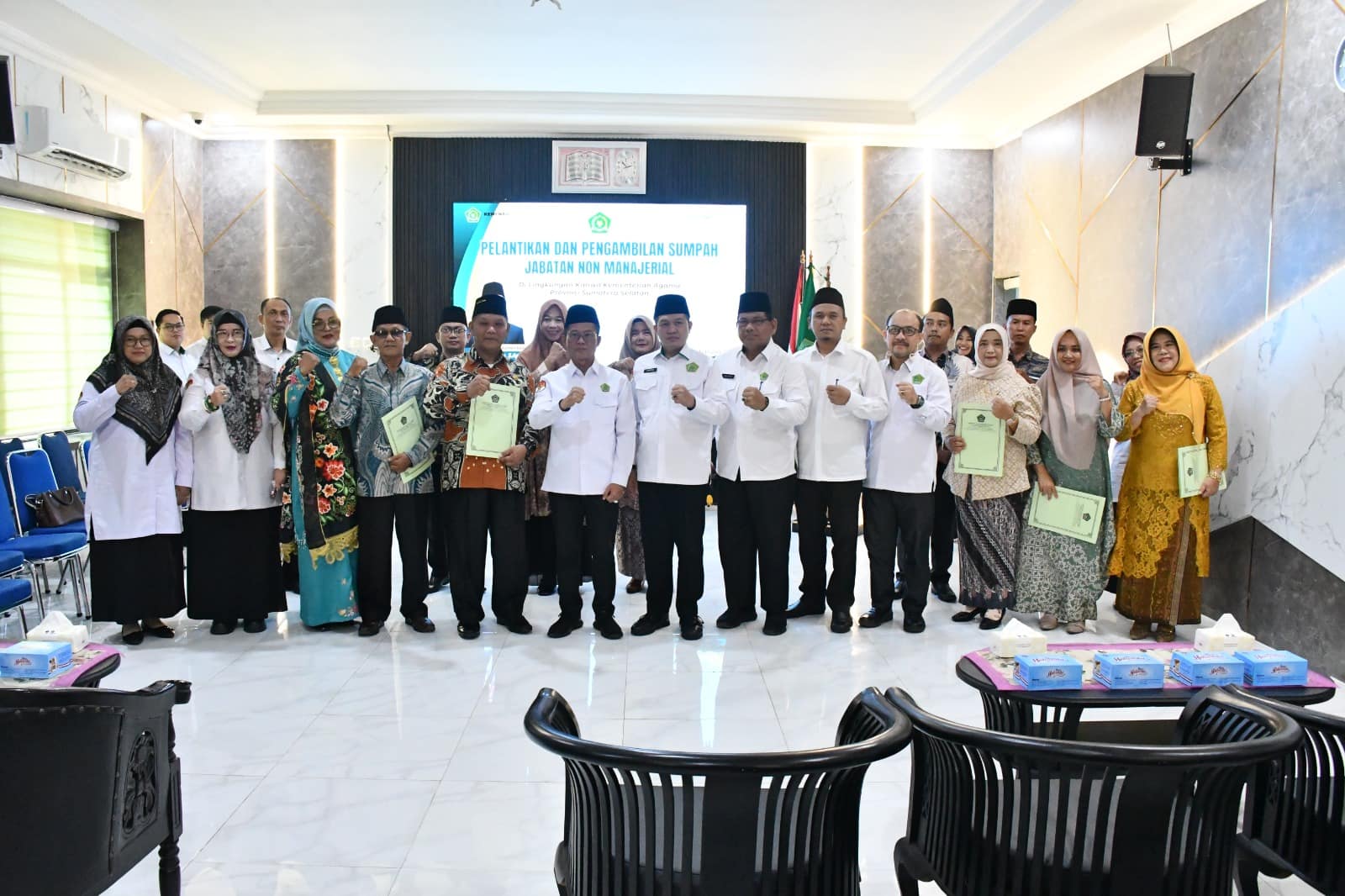 Adapun para pejabat yang dilantik adalah Rusmala Dewi sebagai Kepala MAN 1 Ogan Ilir, Lilis Setiowati sebagai Kepala MTsN 1 OKU Timur, Supadmi sebagai Kepala MIN 3 Musi Rawas, Hidayat sebagai Kepala MIN 1 Musi Rawas, Darwin sebagai Kepala MTsN 1 Ogan Komering Ilir, Rahma Riyanti sebagai Analis Kebijakan Ahli Pertama Kanwil Kemenag Sumsel, dan Firmansyah sebagai Pranata Komputer Ahli Pertama Kantor Kemenag Kabupaten Ogan Ilir.