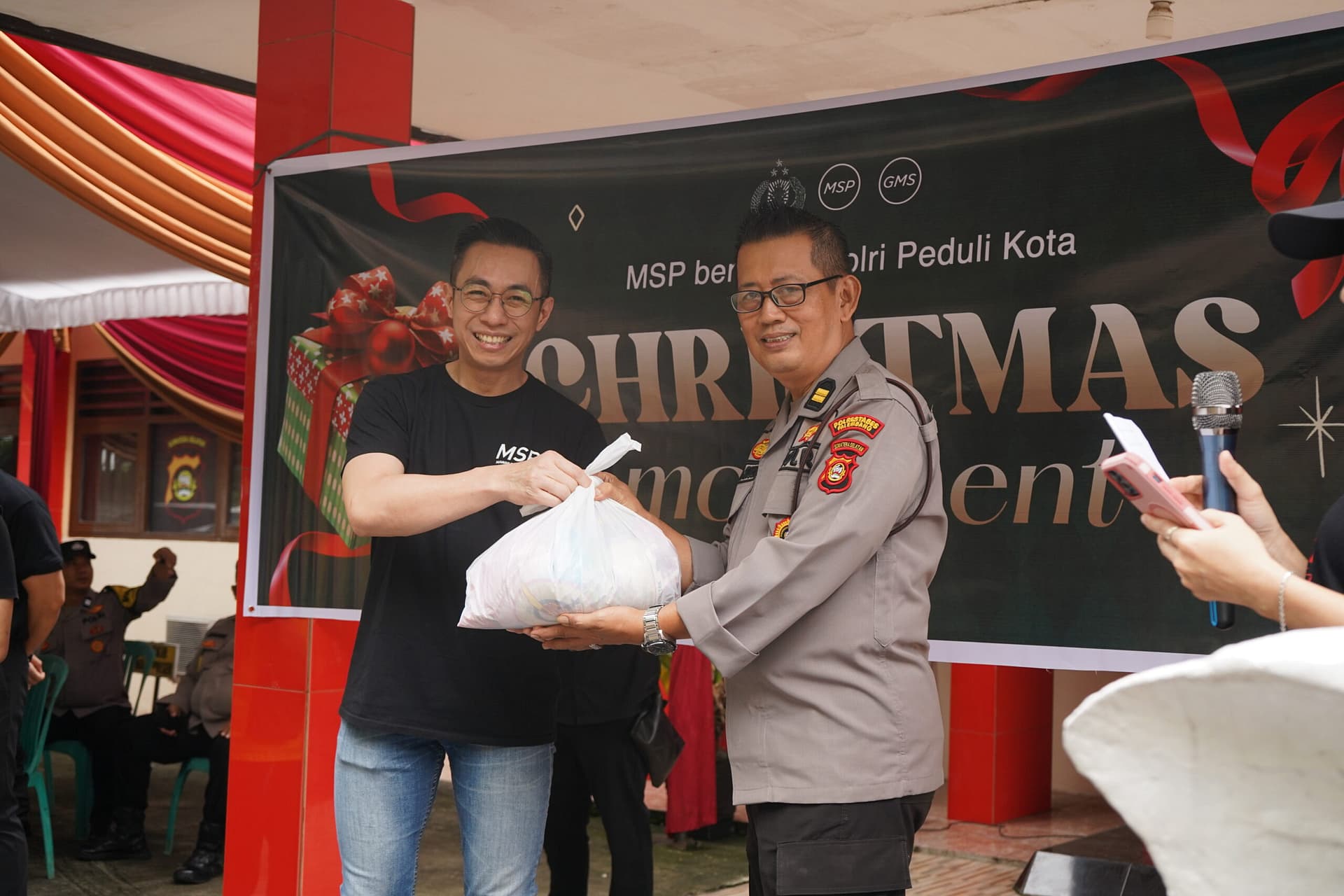 Sementara itu, James Rinaldi dari MSP menyampaikan bahwa kegiatan ini bukan sekadar pembagian paket, tetapi juga membawa pesan kasih di tengah kesibukan kota.