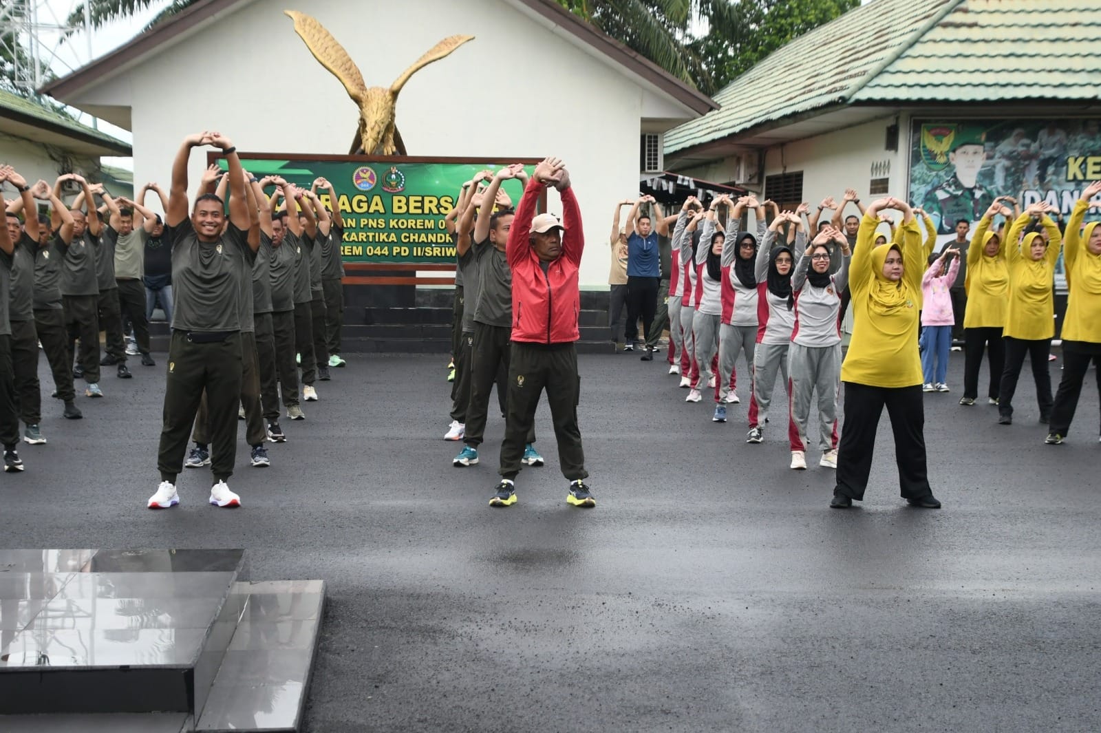 Pelembang – Korem 044/Garuda Dempo menggelar kegiatan Olahraga Bersama dan Coffee Morning yang diikuti oleh Prajurit, PNS, Persit Kartika Chandra Kirana, mitra Korem, serta awak media, sebagai upaya mempererat kebersamaan dan soliditas, bertempat di Makorem 044/Gapo, Kamis (18/12/2025).