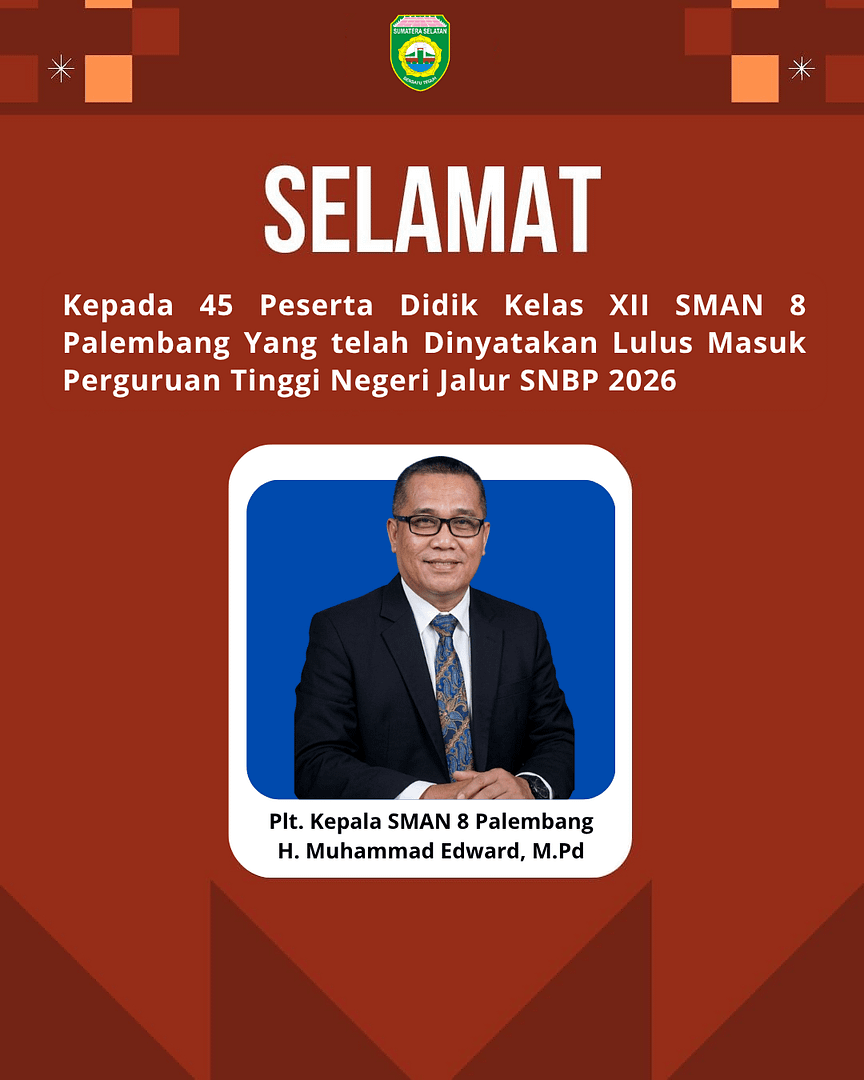 PALEMBANG – Prestasi gemilang kembali diukir oleh siswa-siswi SMA Negeri 8 Palembang dalam Seleksi Nasional Berdasarkan Prestasi (SNBP) tahun 2026. Sebanyak 45 pelajar sekolah tersebut dinyatakan lulus dan diterima di berbagai Perguruan Tinggi Negeri (PTN) favorit di Indonesia.