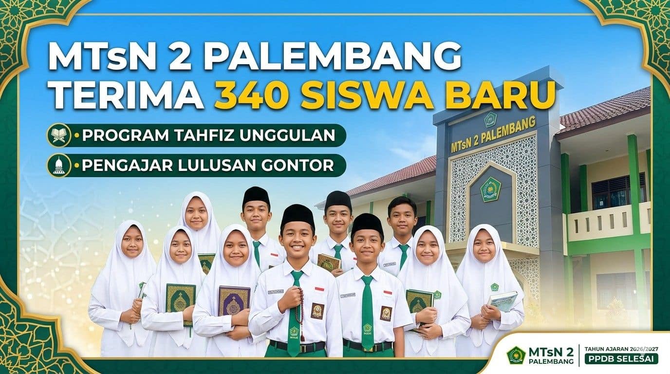 PALEMBANG** – Madrasah Tsanawiyah Negeri (MTsN) 2 Kota Palembang resmi merampungkan proses Penerimaan Peserta Didik Baru (PPDB) untuk tahun ajaran 2026/2027. Sebanyak 340 siswa baru dinyatakan lulus seleksi dan akan mengisi 11 rombongan belajar (rombel) yang tersedia.