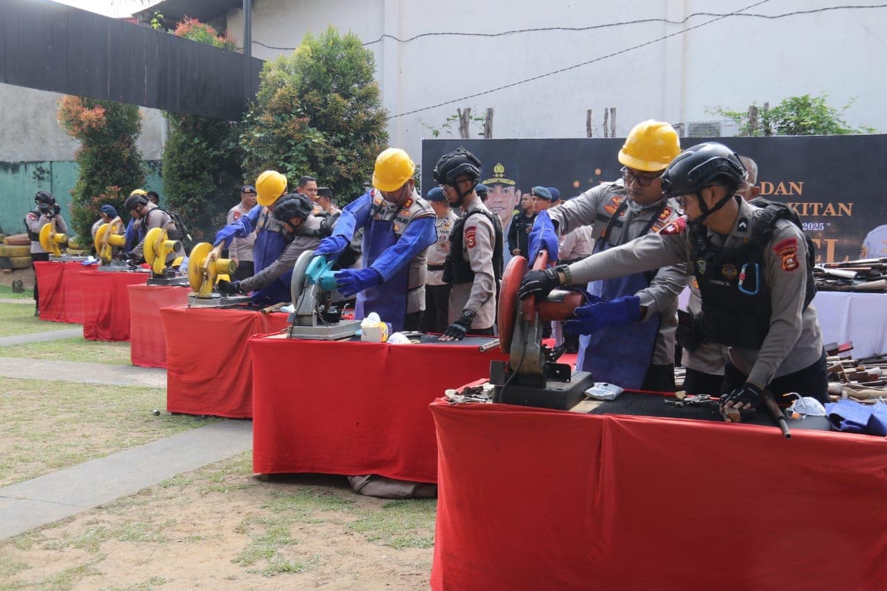 “Selama operasi senpi Musi 2025 Polda Sumsel berhasil mengamankan 32 orang dari 31 kasus yang diungkap,”kata Andi Rian kepada wartawan usai pemusnahan.