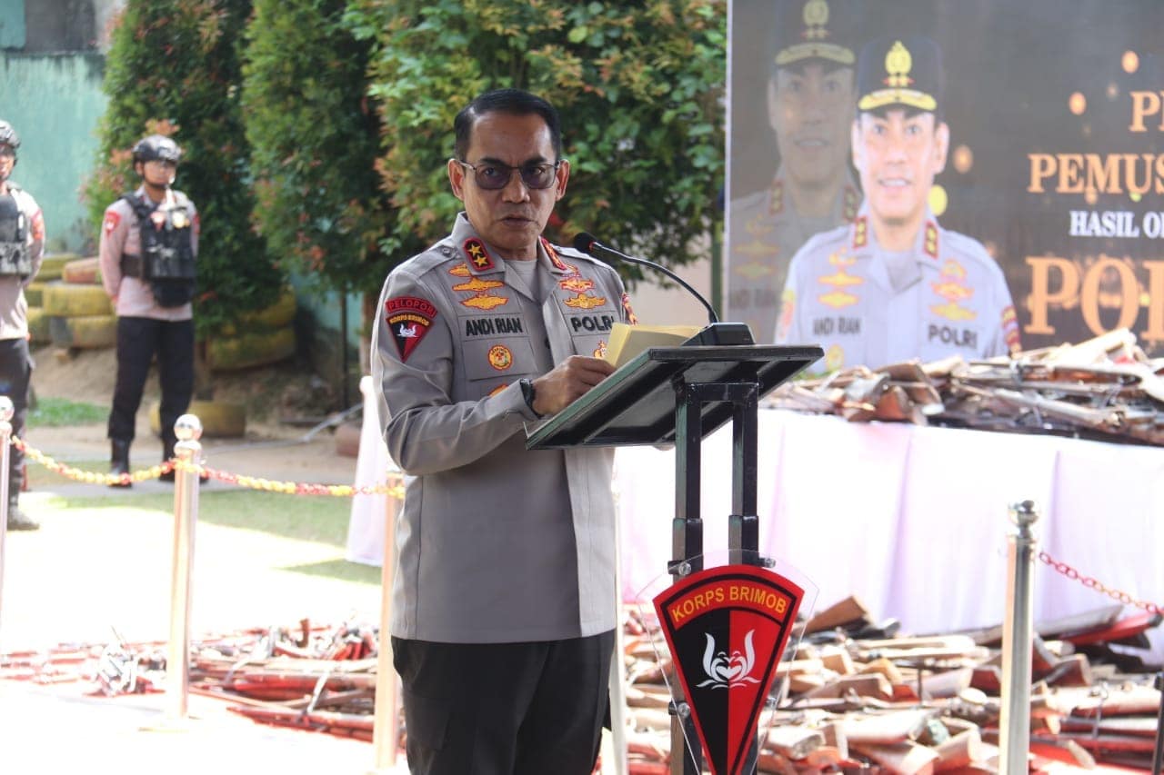 Pemusnahan dilaksanakan dilapangan tembak Hasti Guna Mako Brimob Polda Sumsel dipimpin langsung Kapolda Sumsel Irjen Pol Andi Rian R Djajadi Kamis (3/7/2025).