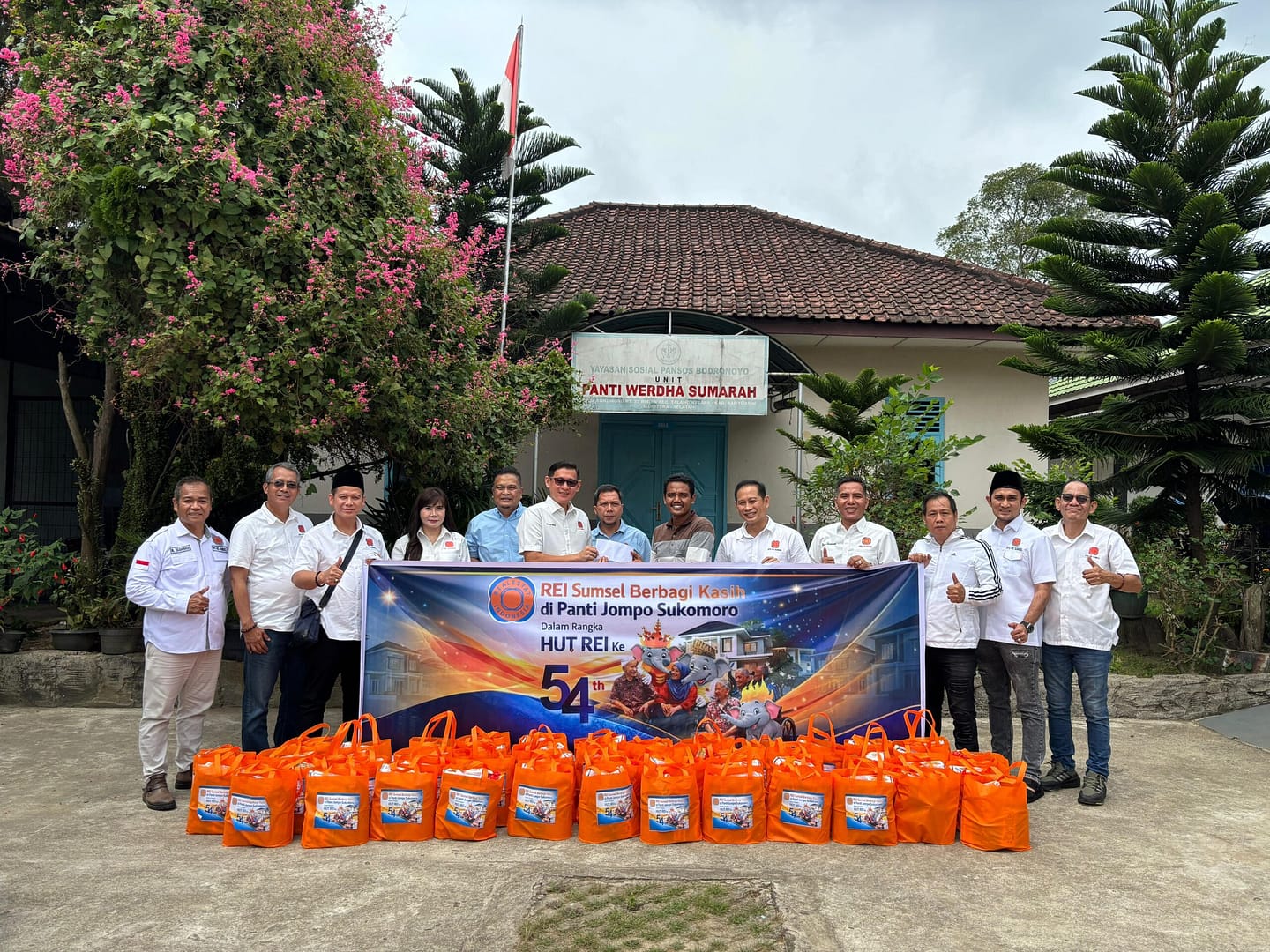BANYUASIN – Dalam rangka memperingati Hari Ulang Tahun (HUT) Real Estate Indonesia (REI) yang ke-54, DPD REI Sumatera Selatan menggelar aksi kemanusiaan bertajuk “REI Sumsel Berbagi Kasih”. Kegiatan ini ditandai dengan kunjungan langsung jajaran pengurus ke Panti Werdha Sumarah, Sukomoro, Senin (2/3).