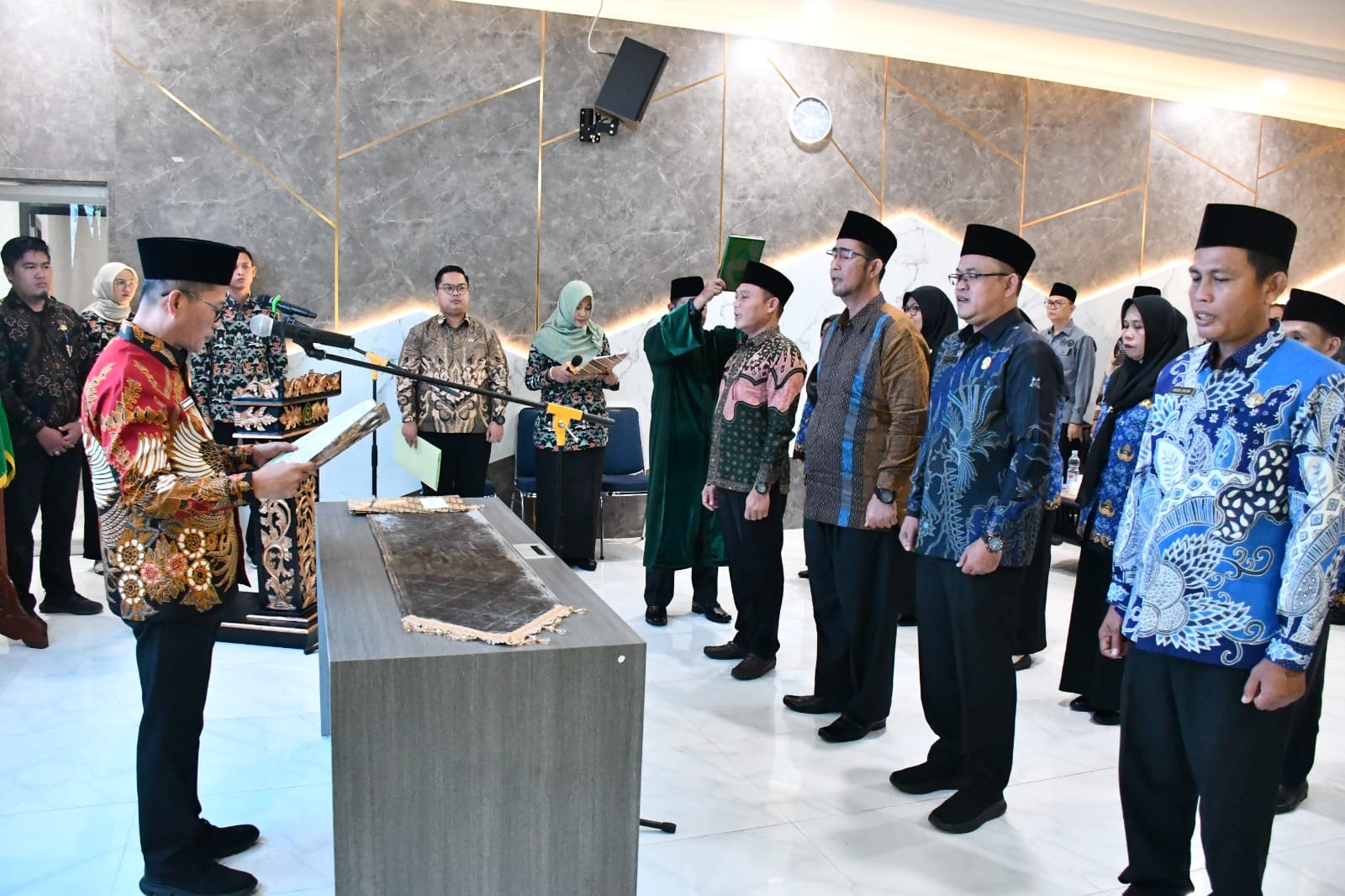 Palembang – Kakanwil Kemenag Sumsel Syafitri Irwan melantik dan mengambil sumpah jabatan sejumlah Pejabat Manajerial, Pejabat Non-Manajerial, serta Pegawai Pemerintah dengan Perjanjian Kerja (PPPK) di lingkungan Kanwil Kemenag Sumsel, Kamis (29/1/2026). Acara yang digelar di Aula Kanwil Kemenag Sumsel ini menjadi momentum penting dalam upaya penyegaran organisasi dan peningkatan kualitas layanan publik keagamaan di Bumi Sriwijaya.