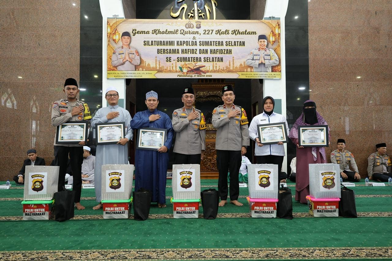 Dalam kesempatan tersebut, Kapolda Sumsel juga memberikan apresiasi kepada para hafidz dan hafidzah, termasuk personel Polri yang memiliki kemampuan menghafal Al-Qur’an, sebagai bentuk motivasi bagi seluruh anggota untuk terus meningkatkan kualitas diri, baik secara profesional maupun spiritual.