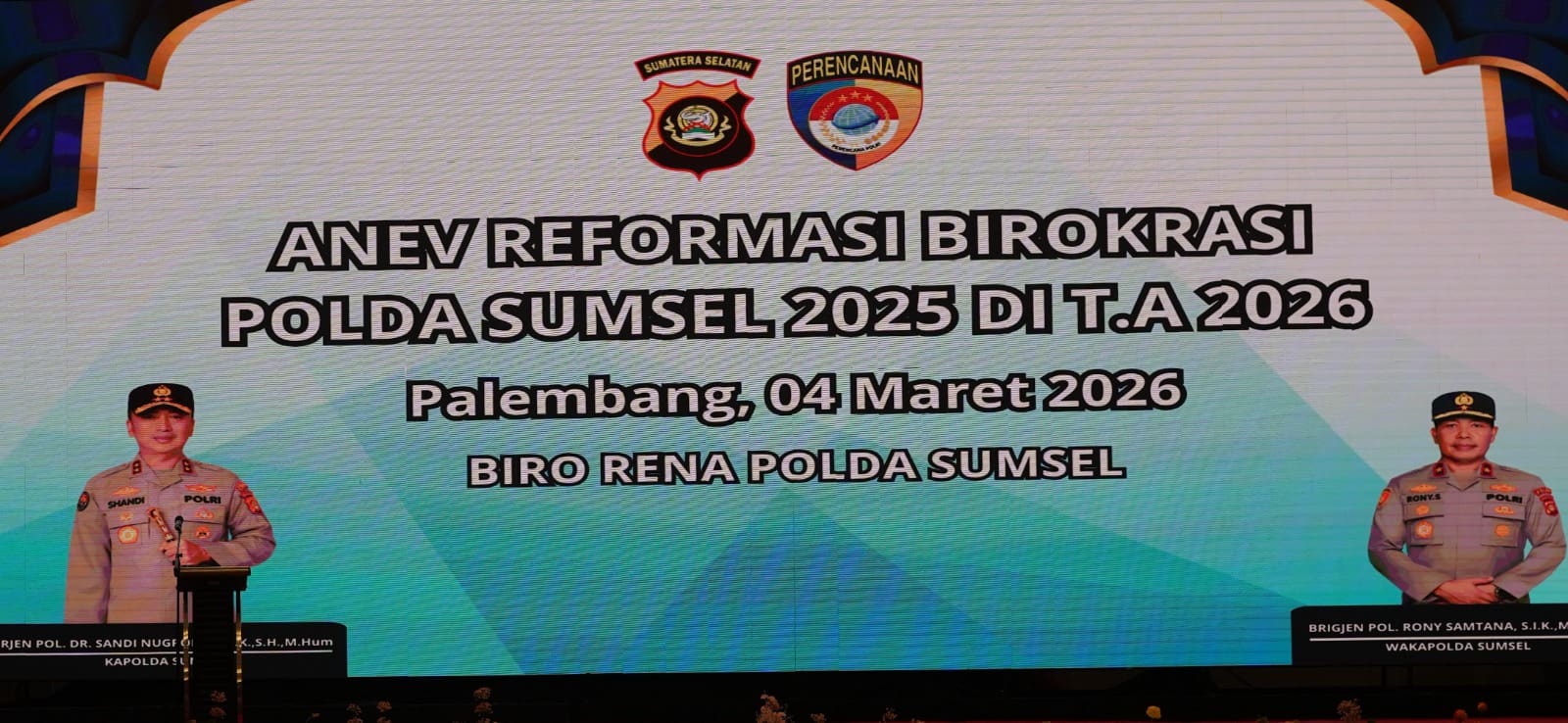 PALEMBANG – Upaya memperkuat reformasi kelembagaan Polri terus dilakukan dari tingkat kewilayahan. Polda Sumsel menggelar Analisis dan Evaluasi (Anev) Reformasi Birokrasi Tahun 2025 Tahun Anggaran 2026 guna mempercepat implementasi Zona Integritas di seluruh satuan kerja dan Polres jajaran.