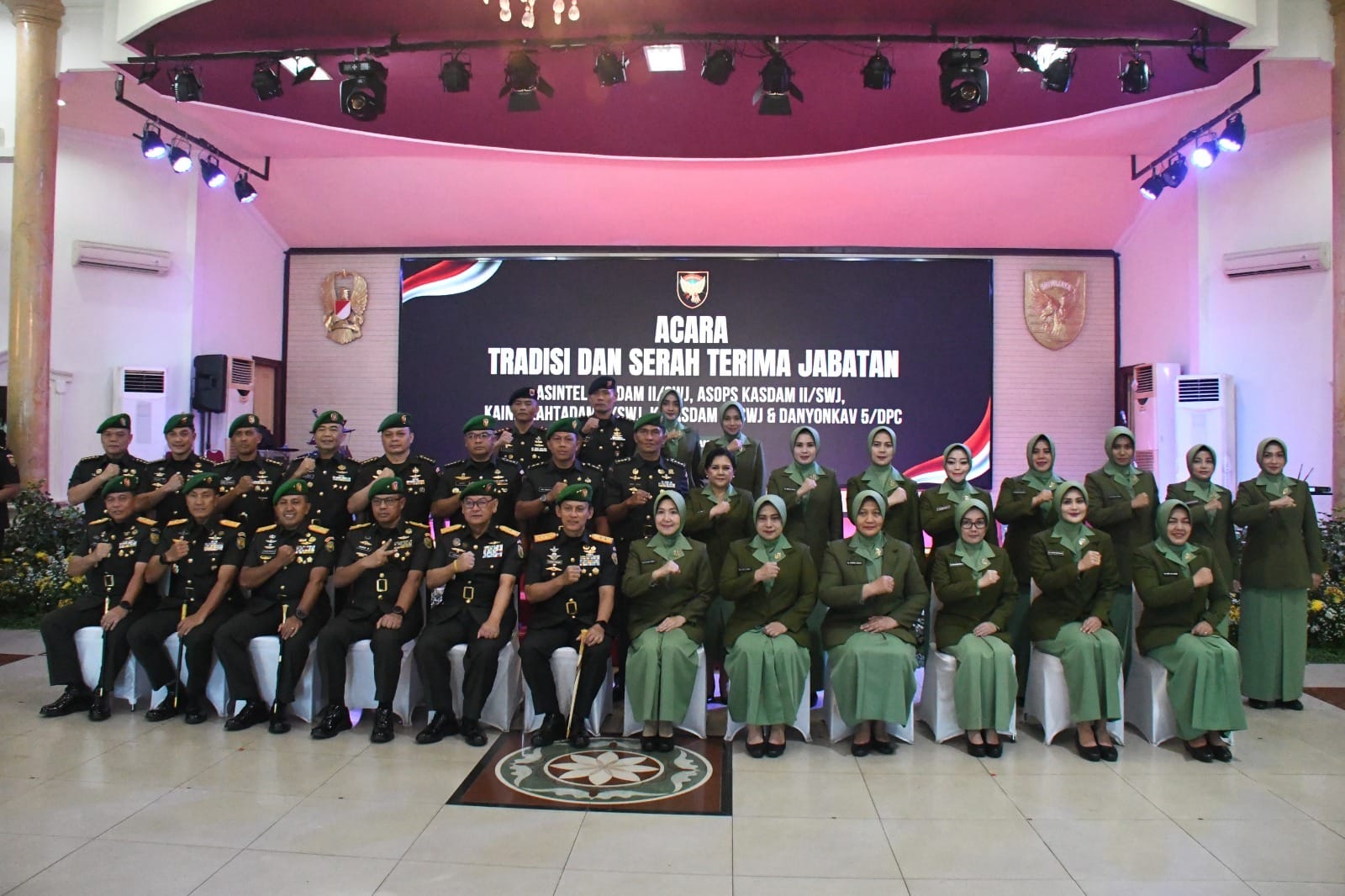 Adapun jabatan yang diserahterimakan meliputi Asintel Kasdam II/Swj, Asops Kasdam II/Swj, Kainfolahtadam II/Swj, Kajasdam II/Swj, serta Danyonkav 5/DPC. Selain itu, dalam kesempatan yang sama juga dilaksanakan serah terima jabatan di lingkungan Korem 044/Gapo, yaitu Kasiops Kasrem 044/Gapo dan Kasiter Kasrem 044/Gapo.