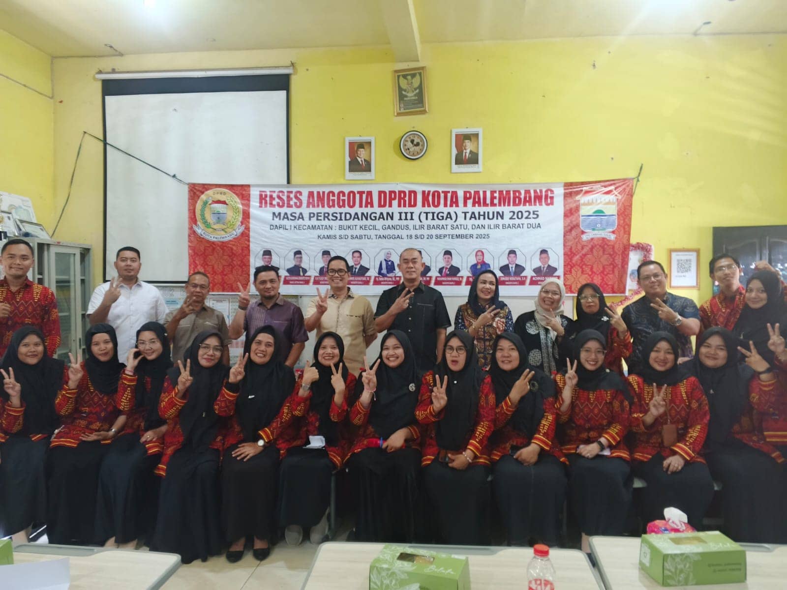 Palembang, 19 September 2025 — Anggota DPRD Kota Palembang dari Daerah Pemilihan (Dapil) 1 yang meliputi Kecamatan Bukit Kecil, Gandus, Ilir Barat I, dan Ilir Barat II melaksanakan kegiatan reses masa persidangan III tahun 2025 di SMP Negeri 2 Palembang, Kamis (19/9/2025).