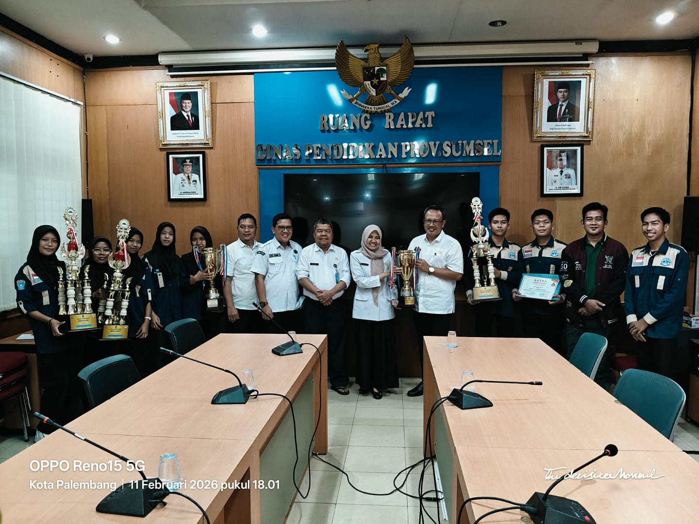 PALEMBANG, 11 Februari 2026 – Prestasi gemilang diraih oleh SMA Negeri 1 Pangkalan Lampam, Kabupaten OKI, yang sukses memborong 22 piala divisi sekaligus memboyong Piala Bergilir pada kompetisi Drum Band Nasional yang digelar November 2025 lalu. Atas capaian tersebut, tim kebanggaan pangkalan lampam ini diterima langsung dengan penuh apresiasi oleh Kepala Dinas Pendidikan Provinsi Sumatera Selatan, Hj. Mondyaboni, S.E., S.Kom., M.Si., M.Pd.
