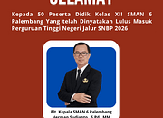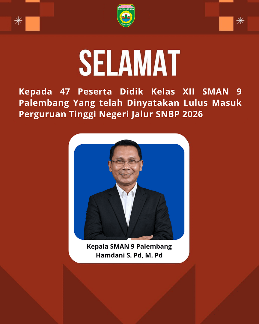 PALEMBANG – Keluarga besar SMA Negeri 9 Palembang tengah diselimuti rasa bangga dan syukur. Sebanyak 47 siswa-siswi terbaiknya dinyatakan lulus seleksi masuk Perguruan Tinggi Negeri (PTN) melalui jalur Seleksi Nasional Berdasarkan Prestasi (SNBP) Tahun 2026.